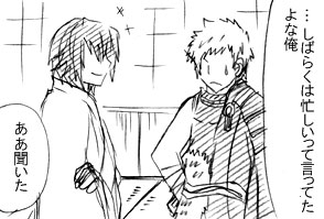 PAGE | 97 98 99 100 101 102 103 104 105 106 107 | ADMIN | WRITE 2013.04.25 Thu 18:59:38 それでも会いたいと思う事5(宗茂×清正)2013.04.24 Wed 18:16:19 それでも会いたいと思う事4(宗茂×清正)2013.04.23 Tue 19:55:23 それでも会いたいと思う事3(宗茂×清正)2013.04.22 Mon 19:29:35 それでも会いたいと思う事2(宗茂×清正)2013.04.21 Sun 21:31:30 それでも会いたいと思う事1(宗茂×清正)明日に続きます。 最近毎日のBGMは三國無双7のキャラソン。 どの曲も良い曲ばかりで飽きません。 一気にこんなに出されるとリピートして聞くだけでも結構時間かかるけど。 その内カラオケにも入るといいですけどねvv その中でもやっぱり文鴦と鍾会は断トツで好きですvv キャラが好きなのもありますが、この二人の対極した曲がたまりません/// そして歌も上手いし…。 次に郭嘉と王異かな。 蜀と呉はゲームのストーリー自体まだやっていないので新キャラが良くわかっていません;; キャラは好きなんですけどね。 ゲームするとまた印象変わる気がするし。 キャラソンのイメージからは曲が好きなのもあるので割とお気に入りですけど。 司馬師は元親にしか聞こえないよ…というかまんま置鮎さんだ/// 今まで三國無双だと誰が一番とかCPはこれ!!っていうのが特に無かったのですが、 無双7で鍾会、文鴦、夏侯覇トリオがもの凄く好き/// キャラだったら今は文鴦。 ゲームやる前とやった後じゃ印象も全然違いました。 交地、文鴦でスペース取ればよかったなぁ。 ゲームもまだまだ全クリアとは程遠いのですが毎日少しづつ進めてはいます。 同時進行で逆裁もねvv |
