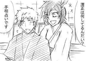 何をどこで間違ったのかわからない衣装…。 ノルべサの会場が3Fになってから初めて行きましたけど広いですねvv 7Fやプリクラも使えるっていいvv 前半はプリキュア合わせ。 後日カメラのデータはもらうとして、とりあえずはプリクラの3人の写真。 いつもと違って色合いがカラフルですvv ライオンボードに包まれていないのはなんか落ち着かないけど…。 後半は黒バス合わせ。 これはもうサニーより自信なくした…;; 青峰くんレイヤーさんお写真撮りに行きたかったのですが自分がこれじゃあお願いできる勇気もありません…;; 青峰くん一番好きなのに…好きだからこそ清正と同じ事になってる…(涙) 今日はうたプリと黒バスのレイヤーさんがかなり多かった感じです。 流石旬なジャンルだけはある…。 どのレイヤーさんもかっこよくて素敵でしたvv 次回イベント参加は1か月飛んで10月のつどーむ。 サークルは黒バス黄青スペースでコスは伏犠。 太公望+伏犠+ジョカ+かぐや+ダッキ+卑弥呼の仙人界合わせしてきます!! 伏犠間に合わなかったら酒呑童子にしますが…。 黒バススペースで無双コス…邪魔になりそうですね(苦笑) 2012.09.22 Sat 19:13:43 手相占い2(宗茂×清正)明日に続きます。 すっかり間が空いたので忘れかけてた宗清…。 今日は午後から君妻さんに御誘いいただいたので演劇を見に行ってきました。 うちのすぐ傍での会場だったのでのんびり、まったり。 こういう小さい感じの劇場も新鮮でした。 距離が近い分演技に迫力ありましたvv 相変わらず内容は難しくてよくわかりませんでしたけど…;; その後は近くのレストランでご飯食べてお話。 三国の方は鍾会推しという結果で話がまとまりました。 清正も最近は残念キャラになりつつありますが、鍾会程ではないと思う。 そんな残念な鍾会は可愛いしおいしいvv とりあえずは黒バスを勧めておいて解散しました。 また機会があったら誘ってねvv 2012.09.18 Tue 20:04:34 関東遠征3日間。9/15~17まで大阪に行ってきました!!