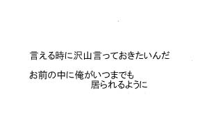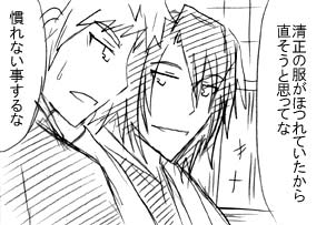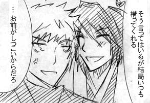 PAGE | 145 146 147 148 149 150 151 152 153 154 155 | ADMIN | WRITE 2012.04.26 Thu 21:00:02 心に留まる記憶に(宗茂×清正)2012.04.25 Wed 21:46:32 ギャップ萌え(宗茂×清正)宗茂って酒に強いイメージがあるのですが、それが逆に弱かったら萌えます。 ぐでんぐでんに酔って清正に甘えてきて思わずきゅんとなっちゃうとか。 普段すましてるだけにイメージと違う所を見るのはたまらない…!! そんな宗清もいいと思います!!! 戦神7が始動しました! 現在ツイッタ―にて常時情報を流しています。 お気軽にフォローどうぞ。 @ikusagami7 サイトは5月中旬くらい、申込書付チラシは6月の謹言から配布を予定しています。 5月のつどーむでとりあえずの告知チラシは配布予定。 今年はめれさんにお願いしましたvv もうかっこよくてかっこよくて…vv 特に清正が…vvvvvv 本当気を使っていただいてすみません;; 今年も開催頑張る!! 2012.04.24 Tue 22:29:34 甘い(宗茂×清正)清正は優しいけどそれ以上に甘いと思います。 口では嫌いだとかなんだとか言ってるけどやっぱり好きだから素直になれないし、本当は世話なんて焼きたくないけどおねね様の昔からの影響でほっておけなくて世話焼くとか想像しただけで萌えますvv 結論=結局両想いなんだよ。 世間知らずな坊ちゃんをとことん甘やかす清正が見たいです。 来月のつどーむのサークルチケットが届きました! スペースはI-6で無双OROCHI2酒呑童子+清正という謎のスペース(笑) もう地元でのサークル参加はいいかな…とか言ってた矢先なんですけどね(汗) 戦神の告知チラシ配布がてらの参加です。 呂布に酒呑童子コスが早くしたい!! 配置図見ても予想通りというかなんと言うか、サークルさんはやっぱり少ないですね。 多分今回もまた無双サークルはぼっちなんだろうけど。 知り合いの方にどれくらい会えるかな?? 本日拍手押して下さった方々ありがとうございました!! 2012.04.23 Mon 21:38:43 狙い(宗茂×清正)やっと出来ました呂布。 酒呑童子に続いての衣装だったのでお金も時間もかかって大変だった…。 資料集に分解図はあるもののやっぱり細かい所まではわからずそのあたりはごまかしていますけど。 縫物をしたかったのに縫うものが全然なかった!! Gボンド2缶の臭いで部屋の警報機が3度もなってしまいましたけど。 今回はとりあえずパーツごとに分解して1日2パーツ目標に作っていました。 なので作ってるもので着てみてはいるんですが、大まかに試着しながらやっていなかったので、完成して全部着てみるとなんだかバランスがおかしいです…;; あとなんか呂布のドーンとしたボリュームがない。 どうしたらあご割れますかね?? 呂布はつどーむの後半にチョウセンと義経とOROCHI2合わせ。 前半の酒呑+ナタ合わせから着替えが出来るのか怪しいんですけど…。 つどーむは1日無双でうろうろしていますので参加される方よろしくお願いします~!! 2012.04.22 Sun 19:07:45 約束(宗茂×清正) |