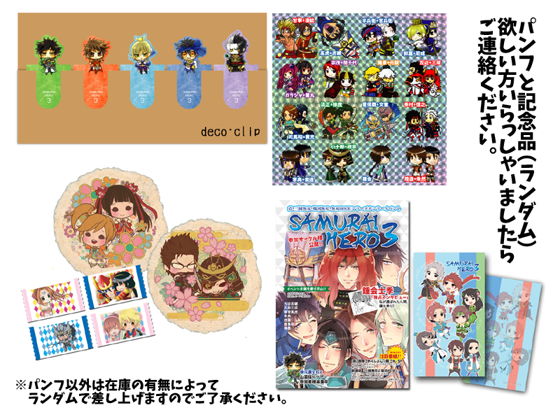 ご参加くださいました方々本当にありがとうございました! 年々参加者様の減るイベントですが、個人的には予想よりは多くて安心しました。 特に北海道無双レイヤー様はいつもどこにいるんでしょうね…。 前日土曜日。 今回は初めて前日から会場を押さえて事前会場準備をしました。 スタッフ5人、2時間でほぼ終わらせる事が出来ましたが、 いつもなら当日1時間でコスまで着替えてどうやって準備してたのだろうかと…; 簡単に打ち合わせもしてその日は解散。 当日日曜日。 天候は快晴最高気温21℃。 確か昨年は30℃近くでかなり暑かったので助かりました。 それでもコスプレして会場にいると物凄く暑いですが。 コスプレする事自体半年ぶり、衣装は1年ぶりの文鴦でいました。 去年もこの衣装で動きづらくて暑くて散々だったのに結局同じ衣装。 でも今一番作りたいのは直政なので文鴦と大して変わりませんがw あんなに沢山のレイヤーさんがいるにも関わらず晋が一人もいなかった(´_`。) サークルさんで欠席が結構あったのは気になりましたが、 今回の来場者様は約110名。 会場の空間の性か入れ替わり入場する人数の性かそんなにいる様には感じませんでしたが。 北は旭川、南は沖縄と、直接お越しいただいた方の遠さにびっくりです。 道外の方も知っているだけで10名以上はいらっしゃいましたし、そもそも市外の方が半分近くの様ですし。 企画はいつもの入場特典、抽選会とカードで運試し。 景品が多いのもあって高確率では当たっています。 今回力を入れたのはパンフレットです。 イベント中必ずと言っていいほど暇になる時間があると思うので 時間つぶしに読み物を沢山入れてみました。 いつものパンフレットの倍のページ数です。 スタッフ総出の原稿です。 これでも集中して30分潰せればいい方なので、次回戦神にはこれの倍のページまで出来るといいなと思います。 執筆ご協力者様いつでも募集中。 イベント終了後は昨年同様アフターを行いました。 今年は20名の方にご参加いただき、飲み放題3時間いろいろな方と話が出来て楽しかったです。 今年も沢山の方々のご協力を得て無事開催終了致しました。 久しぶりにお会い出来た方もいらっしゃって嬉しかったです! 来年の開催は未定です。やりたい気持ちと、現実的な問題で悩み中です。 次は12月、最後の戦神でお会いしましょう! ありがとうございました!! →イベントについてのいろいろはサイトにて。 ちなみにパンフや一部記念品の在庫がありますので、欲しい方いらっしゃいましたら郵送か7月9月つどーむで手渡ししますのでお気軽に。 |