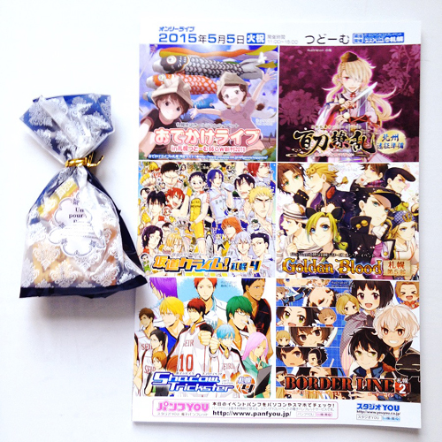 PAGE | 19 20 21 22 23 24 25 26 27 28 29 | ADMIN | WRITE 2015.05.06 Wed 03:17:45 SAMURAI HERO 3 サークル申込締切まであと1か月2015.05.05 Tue 16:51:55 おでかけライブin札幌つどーむ今日はつどーむイベントに参加してきました! 今回はとうらぶオンリーの方のスペースです。 しかしまたもお隣は不在…;反対隣は大所帯と最近スペース配置に恵まれていません;; ひっそりと過ごしていましたが知り合いの方も少なく暇を持て余していました。 そんな中でネーム3つも出来たので早速謹言の印刷予約してきます! 予想通りとうらぶレイヤーさんが多かったです。 同日ビックサイトでも大型のとうらぶオンリー開催していた様ですが 北海道でこれだけのサークルとレイヤーがいるなら東京は大変な事になっていたんでしょうね。 ツイッタ―で覗いていたら待機列が大変な事になっていたのだけはわかりましたが。 7月つどーむもとうらぶオンリー入っていますが、オールジャンルの方で申込ます。 やっぱり無双ぼっちでもその他ゲームジャンルスペースの方が落ち着く…。 余裕があったら次回はコスしたいです。 次回イベント参加は今月24日の交地です。 個人誌も予定通りいけば今週には入稿出来そうです。 鎧コンビアンソロも週末には届く予定なので完成を見るのが楽しみです。 本日参加された方お疲れ様でした!! 2015.05.04 Mon 11:30:30 明日の新刊2015.05.01 Fri 19:47:26 さんぱずとブラスト気が付けば5月になりましたね。 大阪三十六計からあっという間です。 交地も謹言もサムライヒーローも準備に追われて忙しいです。 ついでにそんな時に仕事も忙しいです。 今年のGWは4日しかないのであっと言う間に過ぎそうです。 明日も仕事…。 さんぱずと無双のコラボが始まりまして、早速ガチャをやった所 一番欲しかった朱然が出てきました!あと昭! しかし二人共そんなに☆多くない…;; ブラストではGWパックでSR文鴦ゲットのチャンスが出ましたが、 予想通り手に入れる事は出来ませんでした…; 一人1個しか買えないのが辛い!! 文鴦の為なら何度でも課金するのに!! …次のチャンス来るかな…; 本日までに拍手押してくださった方々ありがとうございました!! 2015.04.26 Sun 00:37:49 文鴦+夏侯覇アンソロジー「でこぼこ!!」 |