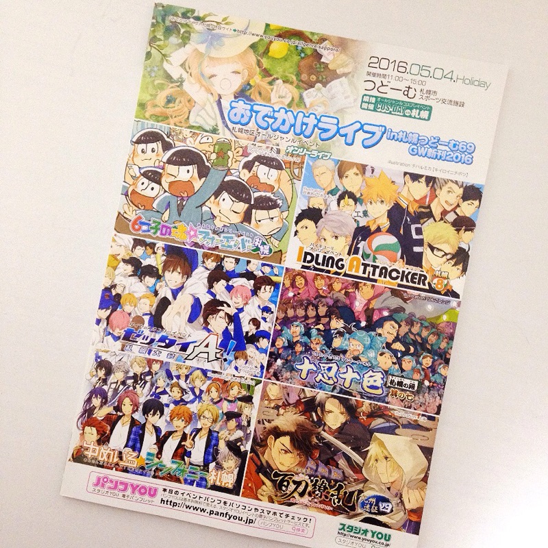 PAGE | 1 2 3 4 5 6 7 8 9 10 | ADMIN | WRITE 2016.05.04 Wed 20:21:54 つどーむイベントに参加してきました!今日はつどーむイベントに参加してきました。 おでライスペースではなく6魂スペースの方です。 毎年この時期のつどーむだと誰か彼かには会えるのですが、 今回K助さんとディーゴさんTOKOさんにしかお会い出来ずでした。 人は多かったのですがジャンルも全然わかりません;; 最近の流行についていけてるのって松くらいなんで…。 なので一人フラッと行ってちょっと早めに帰ってきました。 次回イベント参加は交地に委託、謹言に直接参加です。 松は札幌では7月の6魂と松フェスまでないので、 どっちかに参加しようかどうしようかという所です。 7/30有給が取れれば三十六計に参加したいので31日の松フェスは厳しいかなと。 それでも松でもまだ描きたいので都合の付く時にでも参加したいです。 明日まで休みなので今日はのんびり出来るvv PR 2016.04.28 Thu 18:44:55 直政アンソロジーノベルティその12016.04.27 Wed 20:21:42 つどーむスペース仕事帰りにスタバに寄ってきました~ 先日飲んで来たばかりですが、母が飲みたいと言っていたので。 何回飲んでも美味しいです!ホイップも増量無料だとかで入れられましたがwかなり甘かったですww 5月つどーむのサークルチケットが届きました! おでライではなく6魂の方で一松中心「起爆隊/こ08」です。 今回でしばらく松のサークル参加はお休み予定。 どっちみち7月までイベントもないのでその間は交地と謹言で無双の方で参加しています。 松は描きたいというより供給が多いのでROM専。 無双は文鴦と直政が少ないので自給自足。 昨日のR法則見ましたが、三成人気は凄いですね。 NHKに無双が沢山出てて嬉しいです。 一度は行きたい滋賀県…。 本日まで拍手押してくださった方々ありがとうございました!! 2016.04.24 Sun 16:50:58 ア二ONおそ松さん昨日は会社の人とおそ松さんコラボカフェをやっていたのでア二ONへ行ってきました!