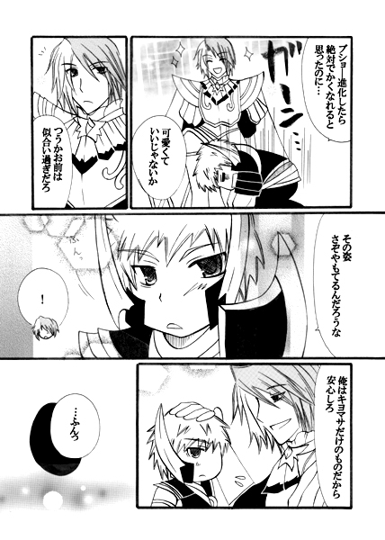 PAGE | 77 78 79 80 81 82 83 84 85 86 87 | ADMIN | WRITE 2013.09.26 Thu 20:26:17 宗清アンソロ第三弾完売しました。2013.09.25 Wed 21:11:34 日進月歩2に委託参加しました!!2013.09.24 Tue 20:23:16 文鴦アンソロジー入稿完了!!交地発行の文鴦アンソロジーとポスターの入稿が完了しました!! 入稿して数日経つけど特に印刷所の方から連絡ないし多分大丈夫な…はず。 添付は当日スペースに置くポスターです。 夜に月のバックにしようかと思ったけどスペースに置いたら暗くなりそうなので夕日にしました。 …というかいつもアンソロ表紙は誰かに頼むんですけど、なんとなく今回は自分。 (頼む期間をすっかり逃してしまっただけだけど;;) 交地のスペースが発表されたらサンプル等など更新していこうと思います。 さて今日からは新刊3冊目に突入!! 先日コミケという存在を知ってついに同人デビューをする文鴦。 しかし文鴦の絵の下手さは誰もが知ってる所。 そこで一人では不安な文鴦は、タイガーファイブ好きが隠しきれずに溢れ出てる鍾会と サークルを組む事に。 そんな二人に巻き込まれ原稿を手伝うなんだかんだ面倒見のいい夏侯覇。 謎すぎる無配本です。 本日拍手押してくださった方々ありがとうございました!! 2013.09.23 Mon 17:35:59 今さらながらの無双オフ会もうすでに2週間前になりますが…;; 君妻さん主催の無双オフ会に参加してきました。 写真編集しようと思っていましたがほとんど写真はありませんでした…;; 最初で最後の司馬昭だったのにちょっともったいなかったな。 前日までなんのコスして行こうか迷っていたのですが(むしろ私服でも良かったぐらい) 司馬師も賈充も元姫も春華も居るとの事で急所司馬昭を。 しかしパイロットの衣装なんて当然作った事も無かったので結構苦戦しました。 しかも全然昭に見えないし;;始終ジョジョ言われる昭…。まぁわかってたけど。 早めに家を出たにも関わらず会場場所がわからなくて何度もうろうろしていました。 札幌に住んでるけどすすきのってほとんど行った事ないです;; オフ会では可愛いぶんおちゃんの缶バッチもらったり、ぶんおちゃんでゲームプレイしたり 記憶がほとんどそのあたりしかありません…。 それでも何故かいろんな意味で一日印象に残ってる郭嘉様(笑) オフ会後はカラオケに行ってきました。 この日から無双キャラソンの映像が無双になってるという情報で、 早速ぶんおちゃんを見る為にあかりさんと一緒に。 ぶんおちゃんの映像再生の順番がかなり最後の方なので、 4~5人くらいの長めの曲の人しか姿を確認する事が出来ません。 趙雲を見る為には徐庶を歌えるようにしなきゃ。 始めて全曲入れましたけど、やっぱり呉がわかりません;; 他3国は大体わかるのにね。 また行ってぶんおちゃんの姿を見たいです!!! 次コスするまで時間もあるので少しカメラでもいじってみようかな。 本日拍手押してくださった方々ありがとうございました!! 2013.09.19 Thu 19:16:40 十五夜(夏侯覇+文鴦)覇と文鴦を横長のコマに入れるのは難しいですね… どっちか見切れるんですけど;; 猛将伝のサイトが更新されていたので見て来ました!! ムービーナレーションまさかの呂布。 呂布の新しいストーリーが出来たからきっと自分で紹介したかったんでしょうね(笑) 朱然もやっとCGになってましたがイラスト以上にきらきらしてた…。 すごく美しい人部類なんですかね。 新キャラ枠もこれで丁度空きのマスが無くなっていたので終わりかな? やっぱり文欽来ないのか…(涙) 趙雲のDLCはかっこいいですね(昨日も言ったけど) これ討鬼伝が気になるんですけど…ちょっと買おうか悩んでるくらいには。 PS4でも発売みたいですけど猛将伝の為だけに4を買うメリットが今の所ないので、 猛将伝はPS3を、PS4本体は欲しいゲームが出るまでは保留ですね。 戦国無双4もPS3での発売が確定したみたいなので、ちょっと安心。 無双発売される度本体セットで買う事が多いから正直きついです;; 戦国無双4も早く情報発表されないかなー 清正がどうなるか楽しみな半面怖い…。 本日拍手押してくださった方々ありがとうございました!! |